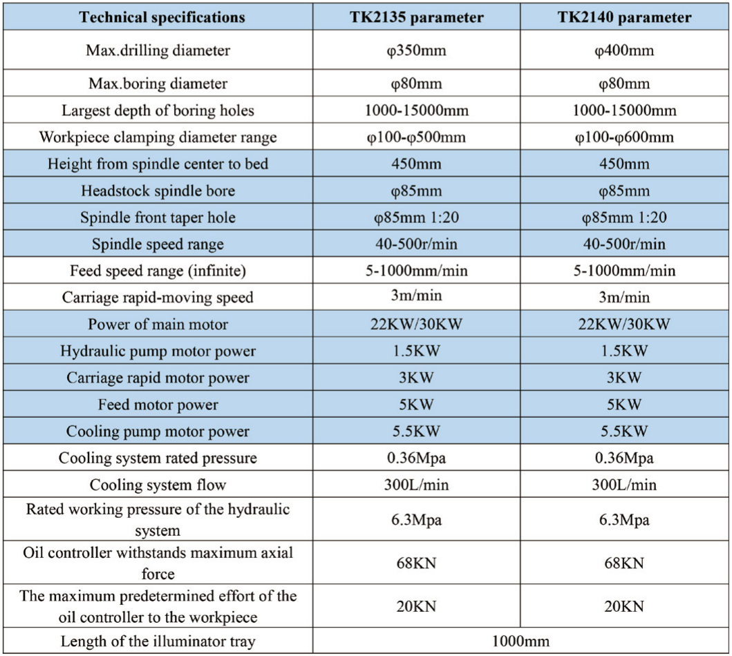 Deep hole machine tool TK2135/TK2140 Specifications and performance